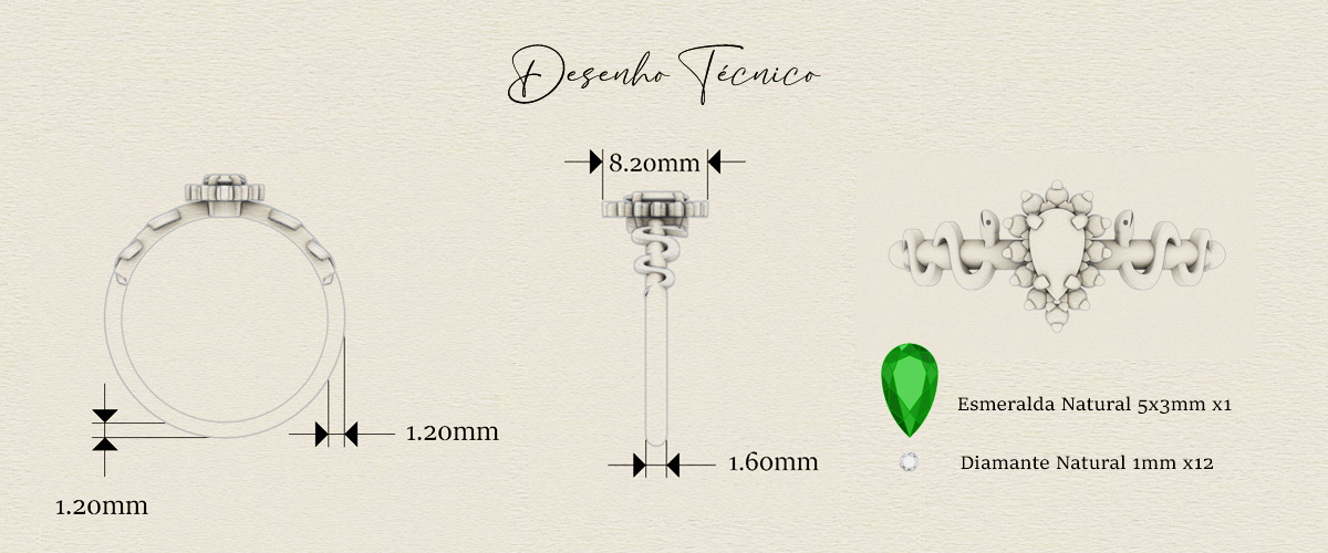 Especificação da pedra: esmeralda 5x3 ( 22 pontos ) e 12 Diamantes naturais 1,0mm ( 0,5 pontos cada )