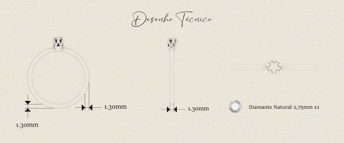 Especificações da pedras: diamante central de 2,7mm (8 pontos)