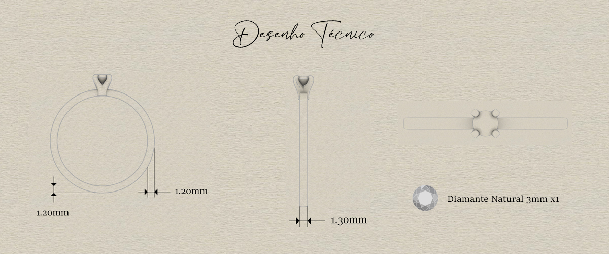 Especificação da pedra: diamante central de 3mm (11 pontos)