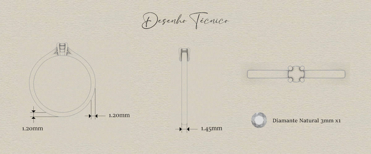 Especificação da pedra: diamante central de 3mm (10 pontos)