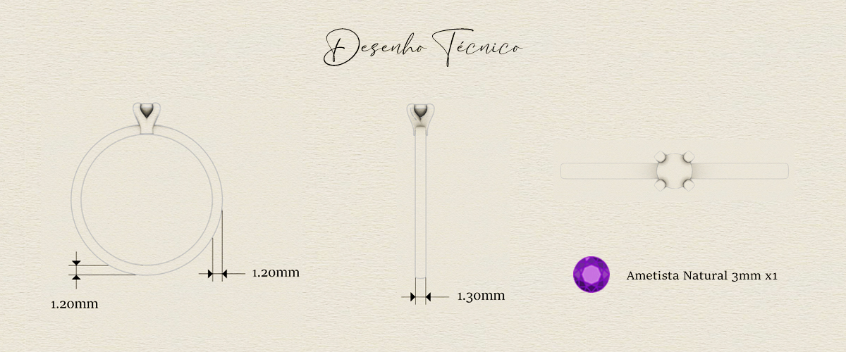 Especificação da pedra: ametista central de 3mm (11 pontos)