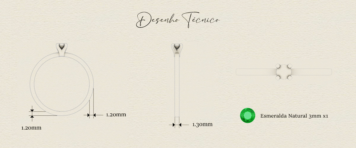 Especificação da pedra: esmeralda de 3mm (11 pontos)