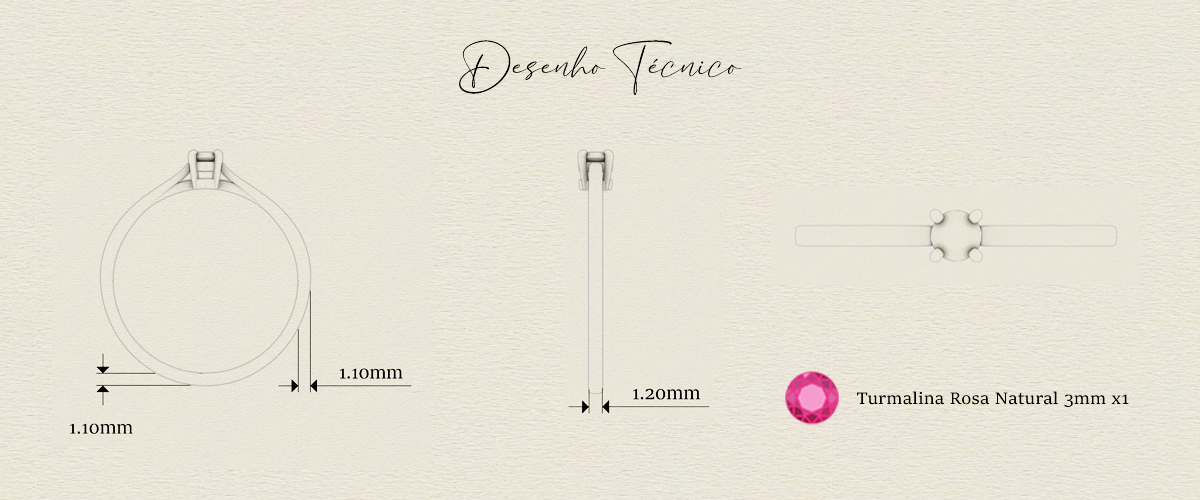 Especificação da pedra: turmalina rosa central de 3mm (11 pontos)